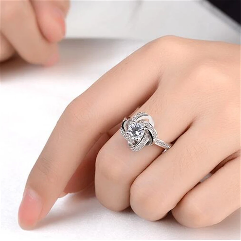 New Arrivals 925 Sterling Silver Crystal Clover Ring Bague Anillos Hot Sale Pure Silver Fine Jewelry For Women