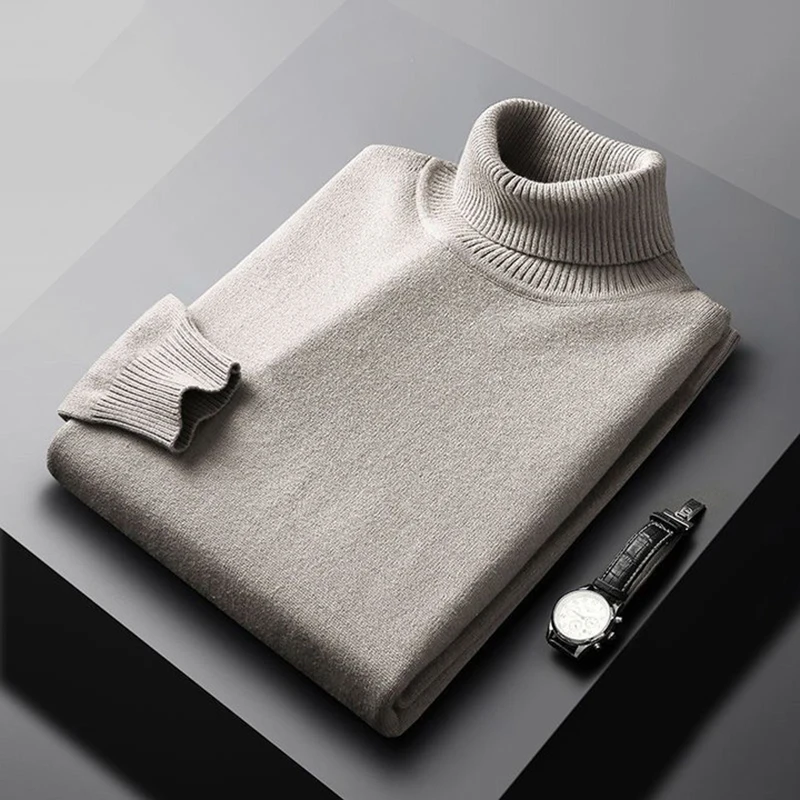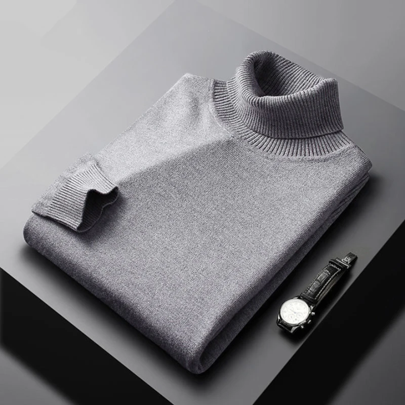 New Autumn Arrival Casual Turtleneck Sweater Men Solid Color Long Sleeve Pullovers
