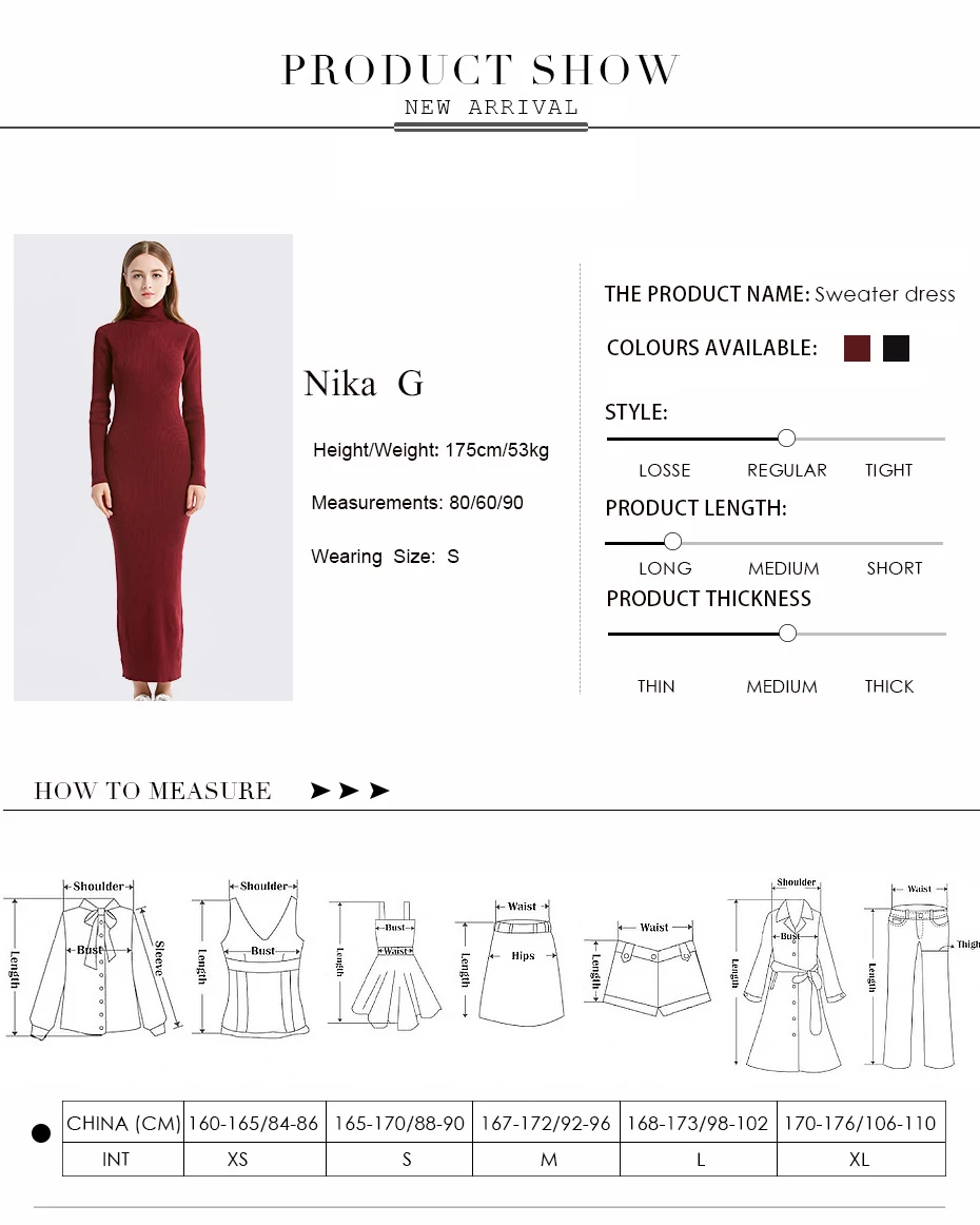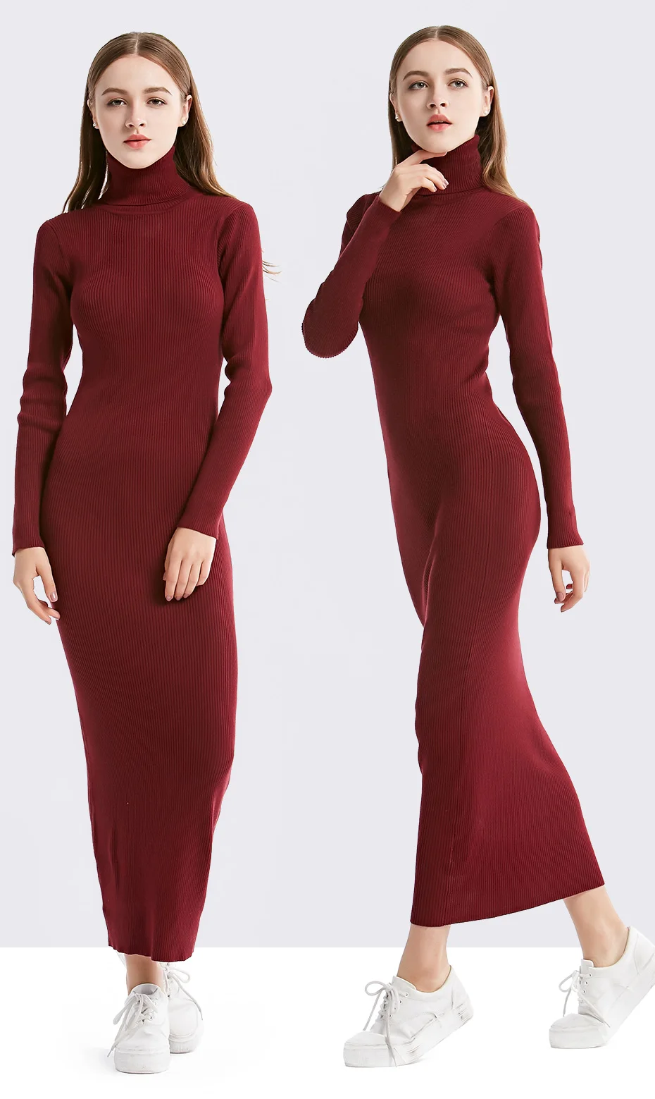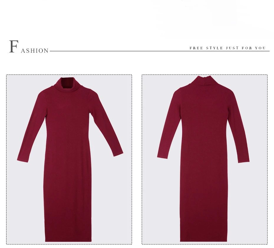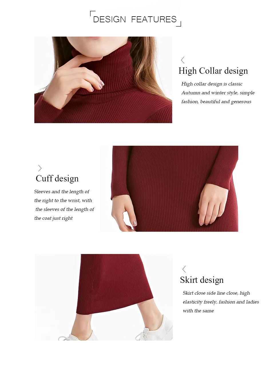 New Fashion Women Sexy Party Dress Knit Style Long Sleeve Turtleneck Winter Maxi Dress Slim Work Wear Office Dress Vestidos