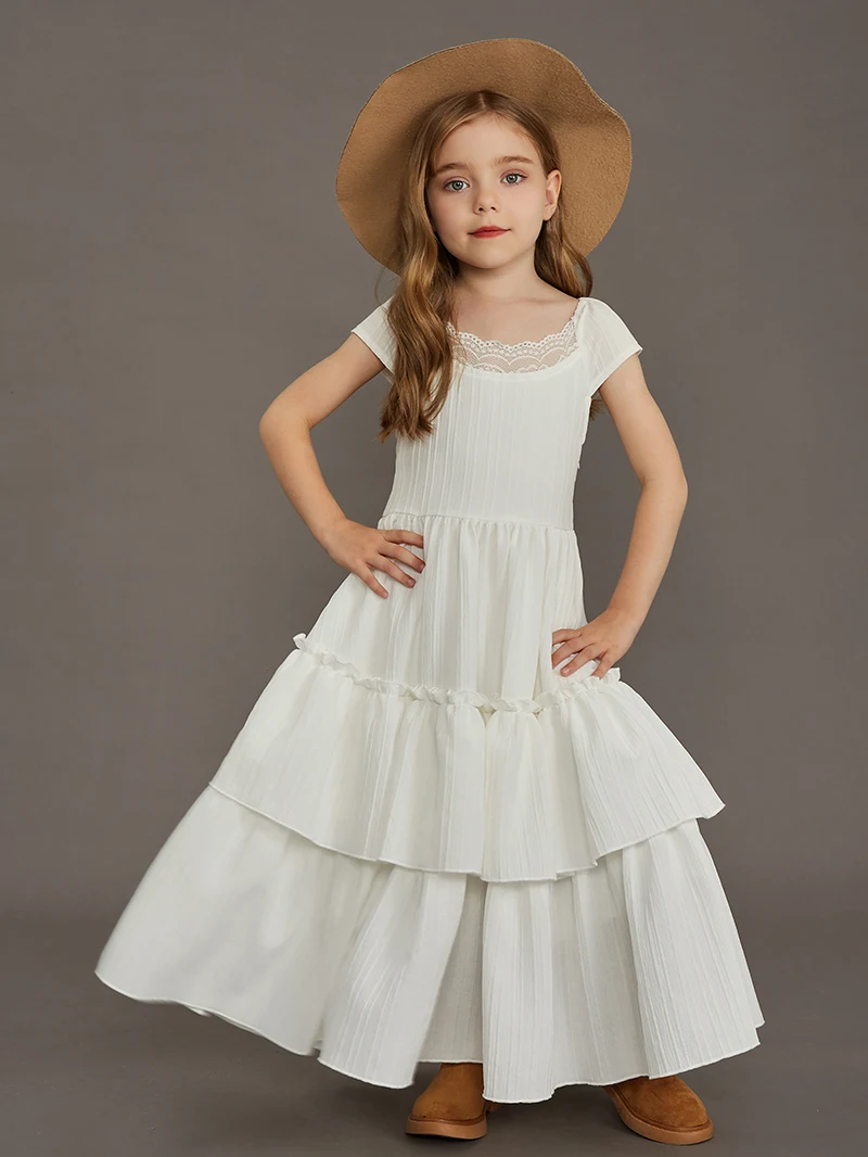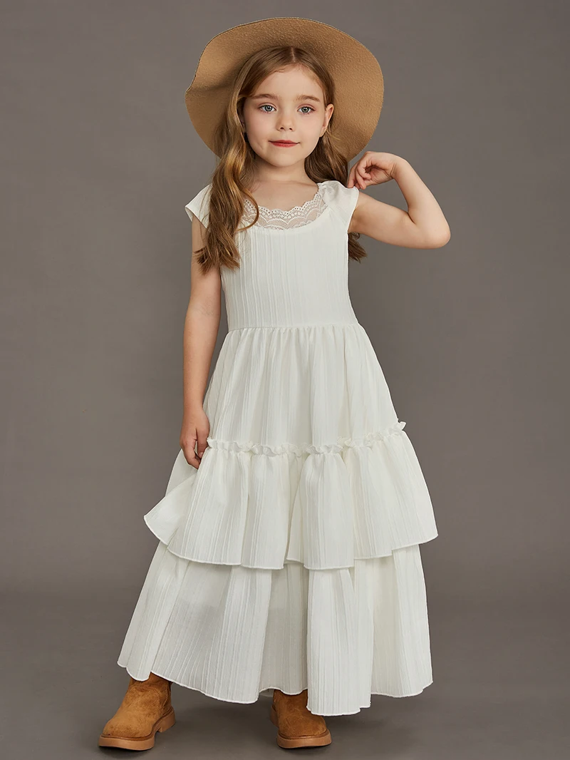 New Girls Summer Dress Cotton Flower Baby Kids Wedding Lace Princess Party Dress Teenager Children Clothes for 3 4 6 8 10 12y