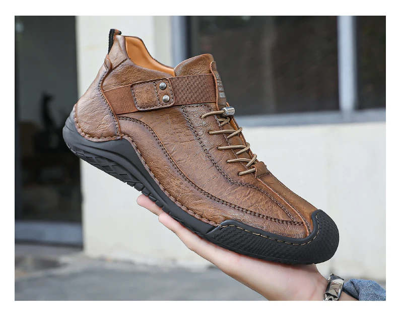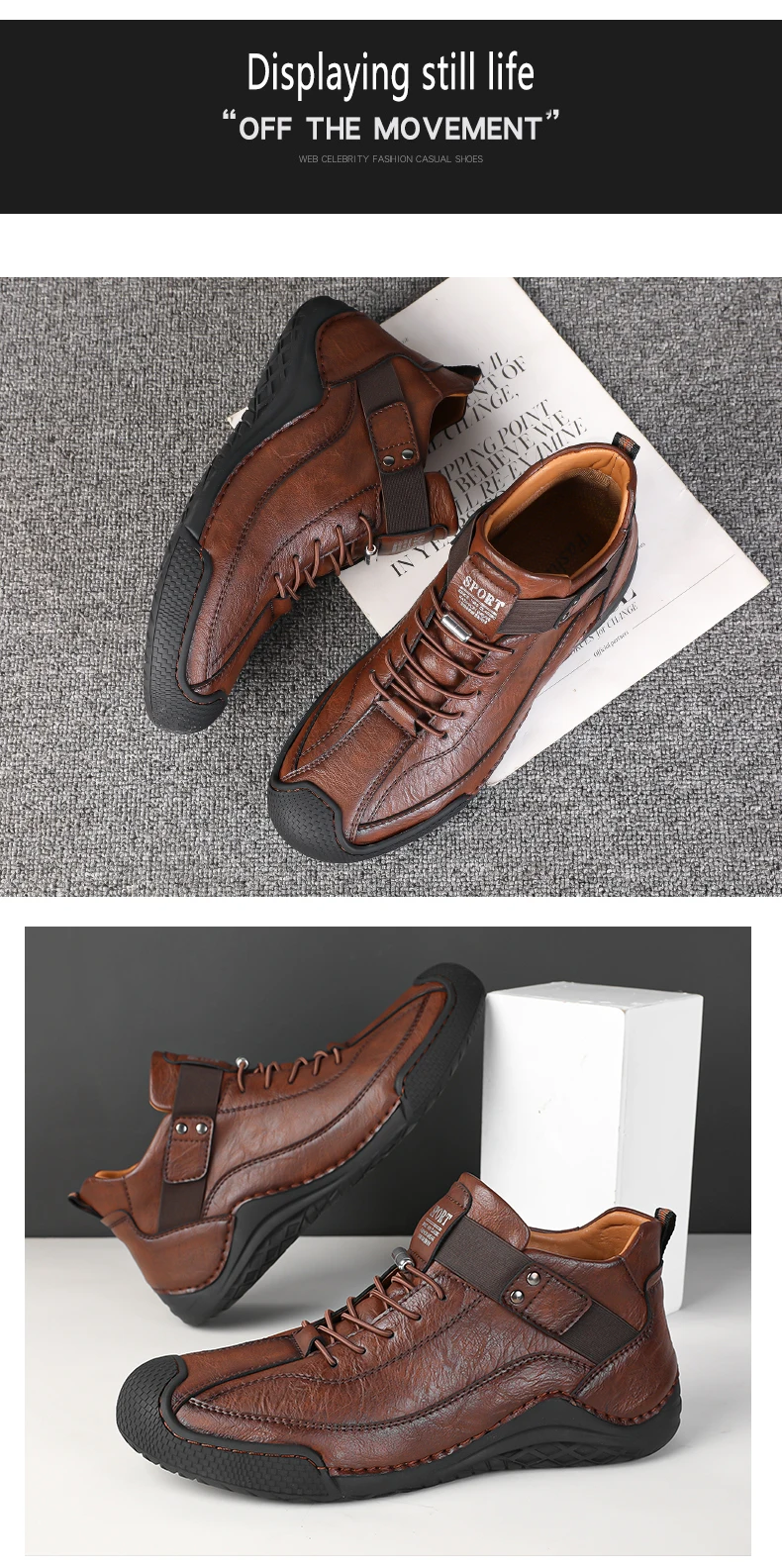 New Handmade Men’s Shoes Versatile Casual Shoes Anti slip Soft Sole Outdoor Shoes Men’s Casual Leather Shoes Large Size Shoes