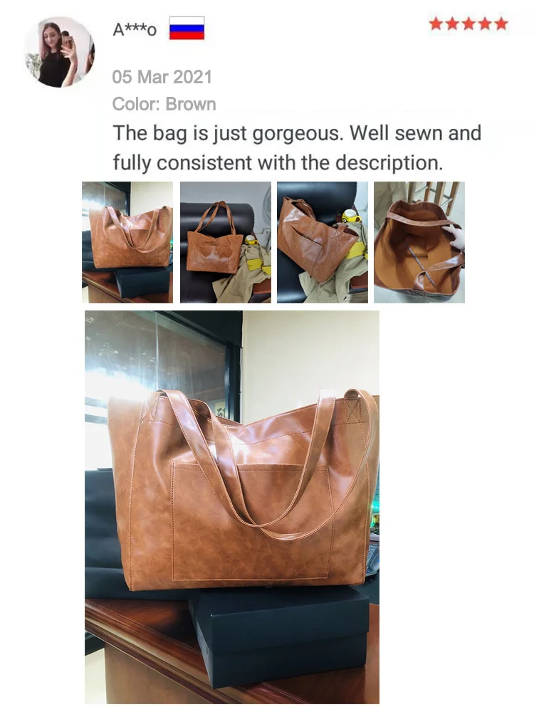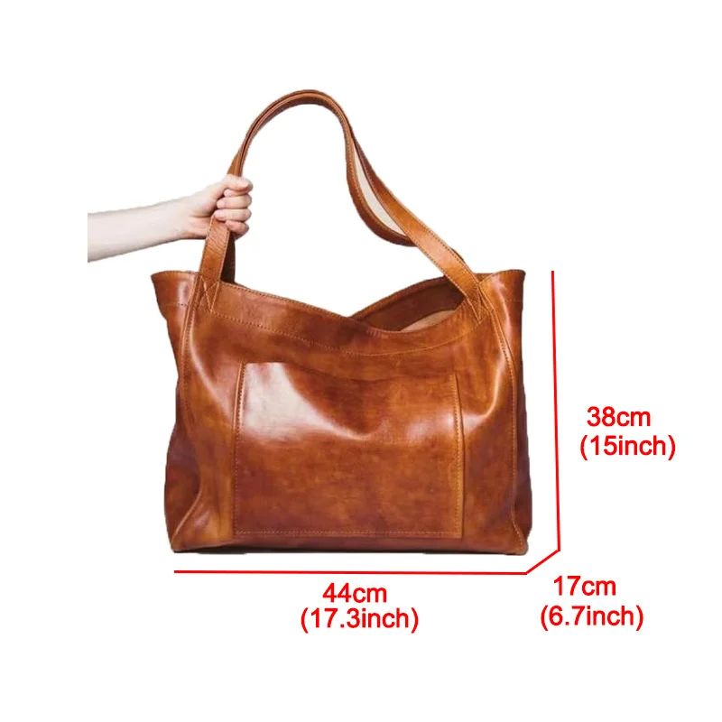 NEW Oil Wax PU Leather Tote Bags for Women’s Handbag Luxury High Capacity Lady Hand with Purse Pocket Women Shopper Bag Big