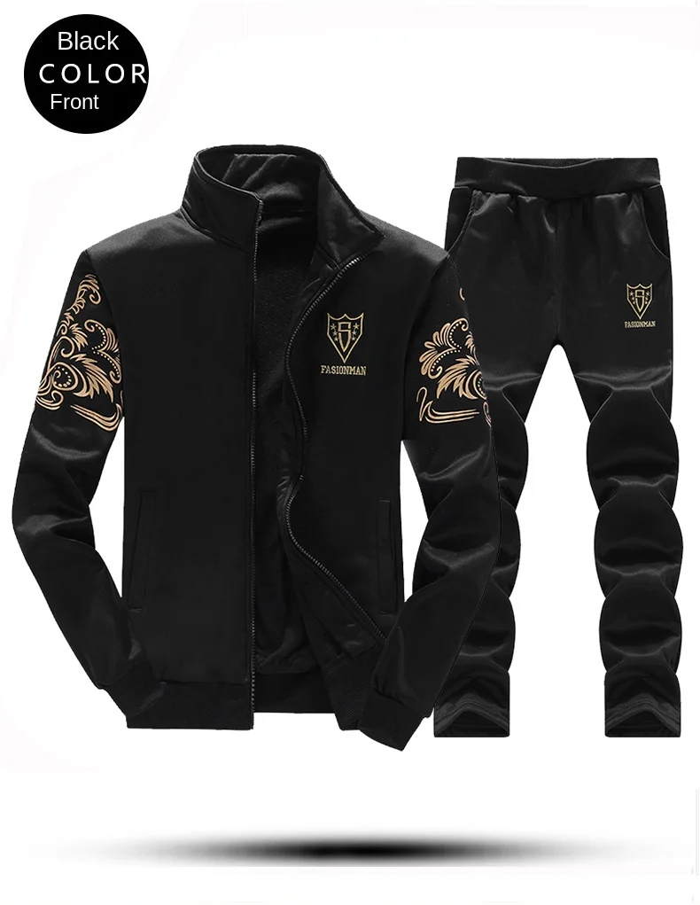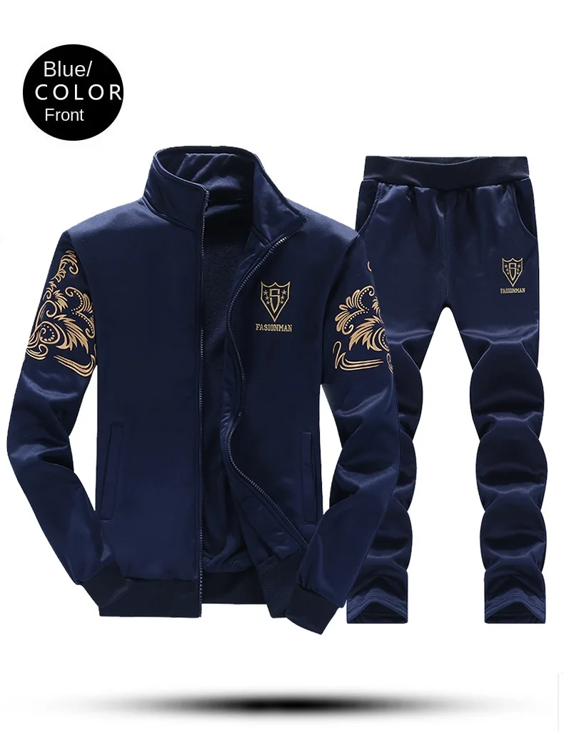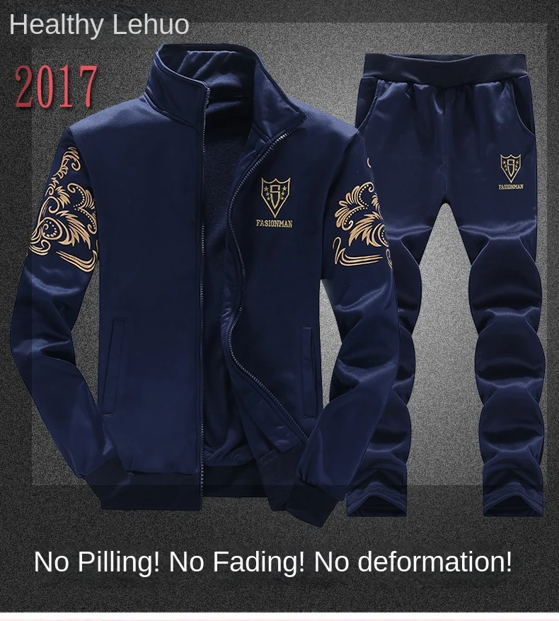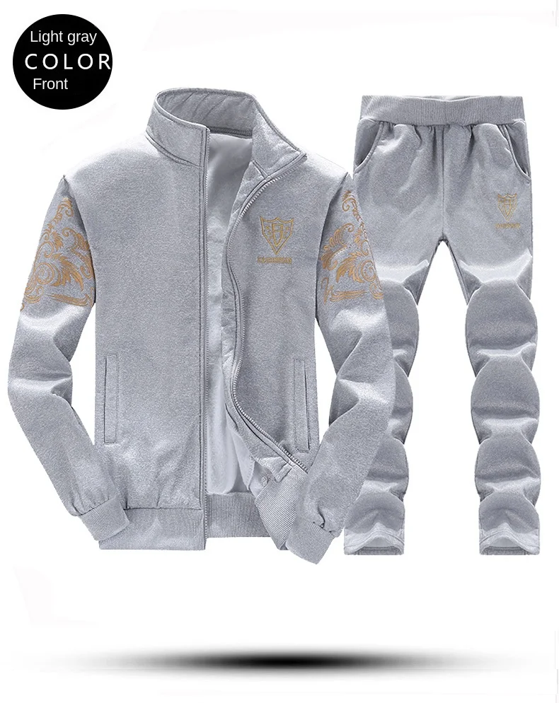 New printed men’s autumn and winter jackets, long sleeved casual two-piece embroidered hoodie set, cross-border exclusive supply