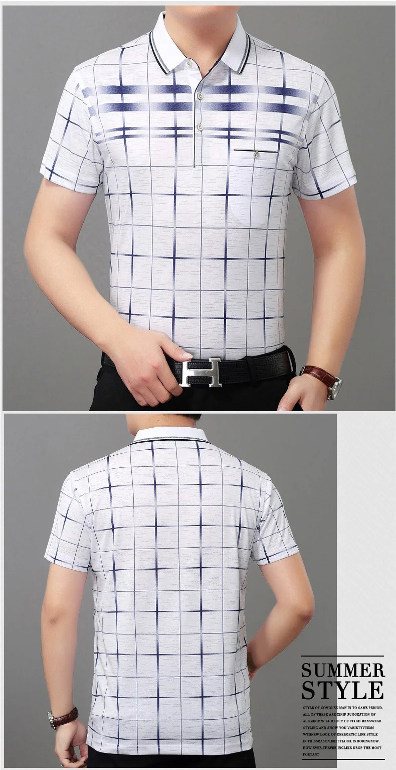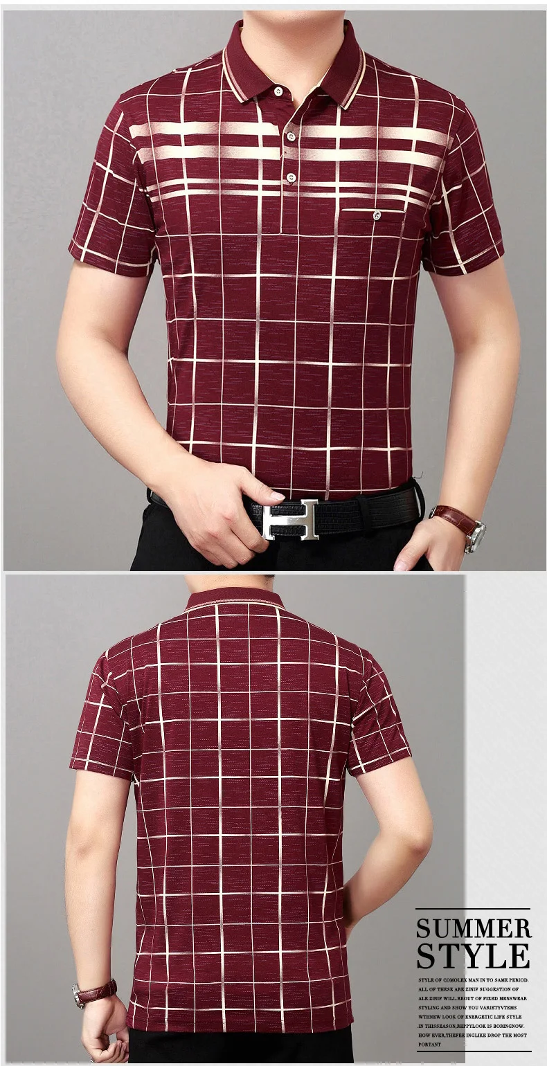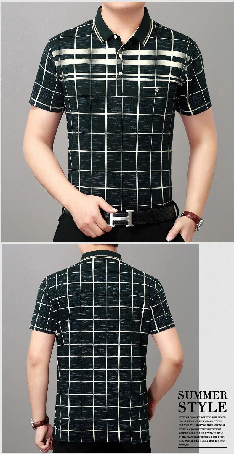 New Summer Polo Shirt Men Short Sleeve Polos Shirts Plaid Slim Fit Mens Pol Clothes Dress Bodybuilding Streetwear Poloshirt 1780