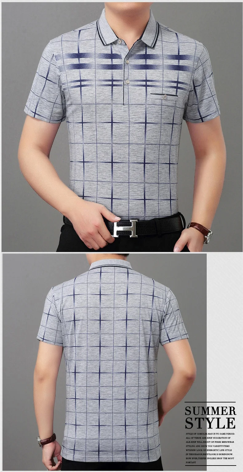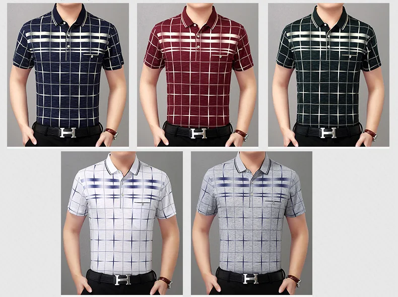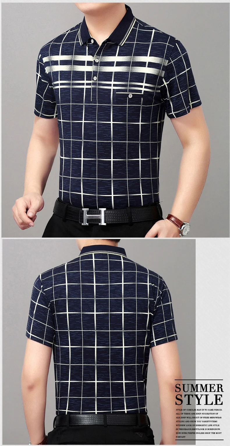 New Summer Polo Shirt Men Short Sleeve Polos Shirts Plaid Slim Fit Mens Pol Clothes Dress Bodybuilding Streetwear Poloshirt 1780