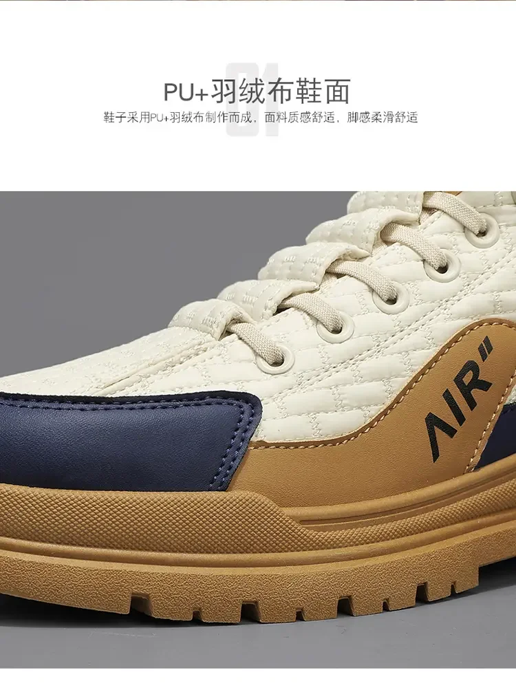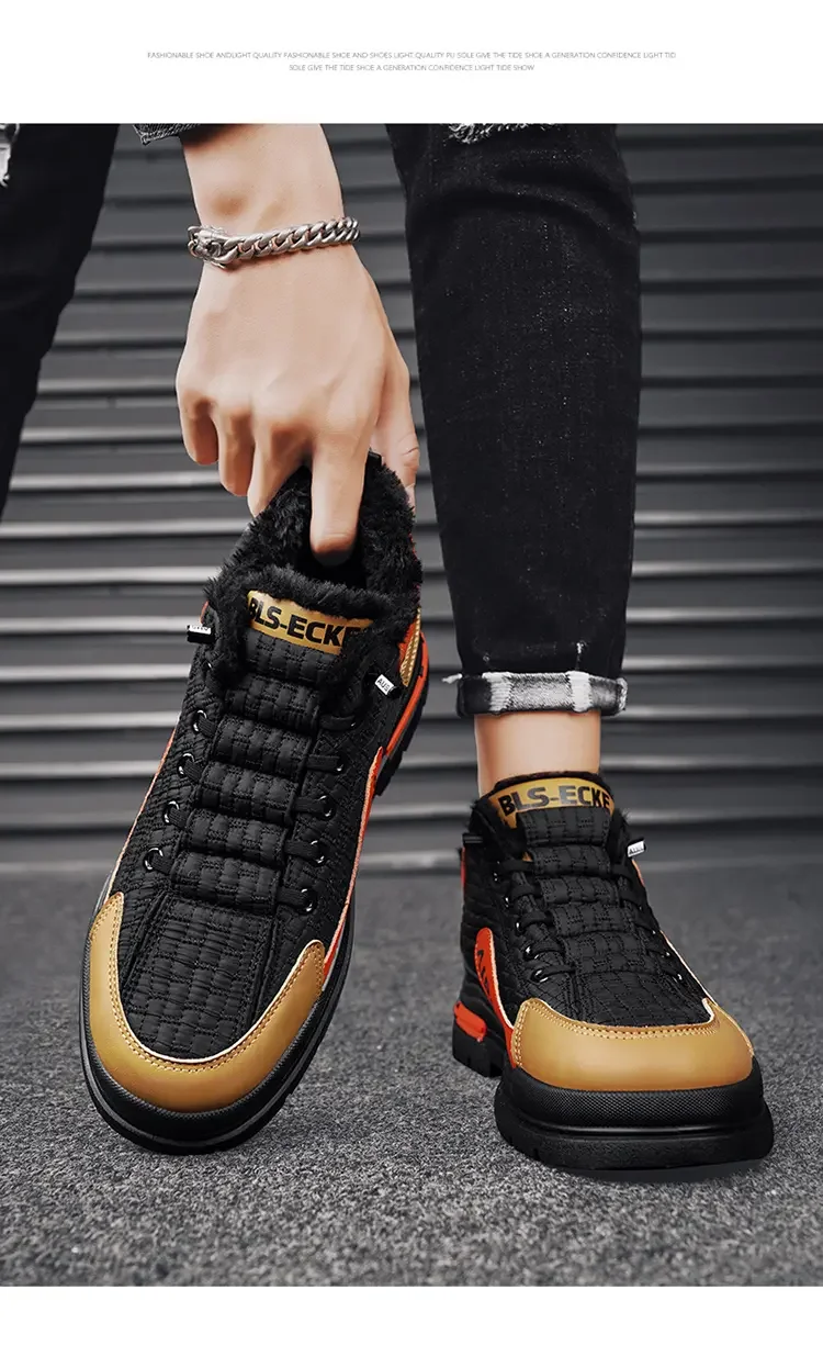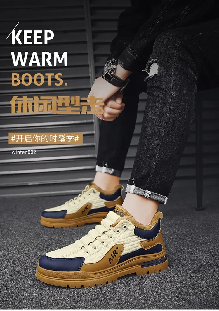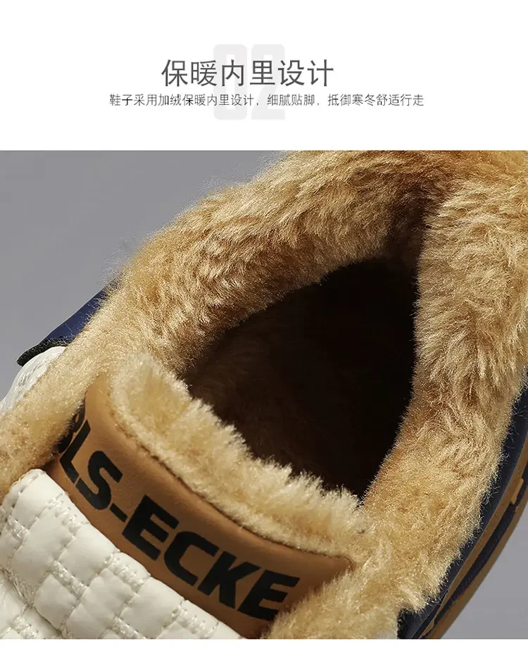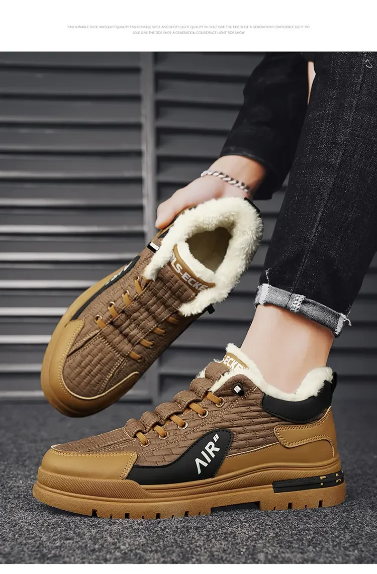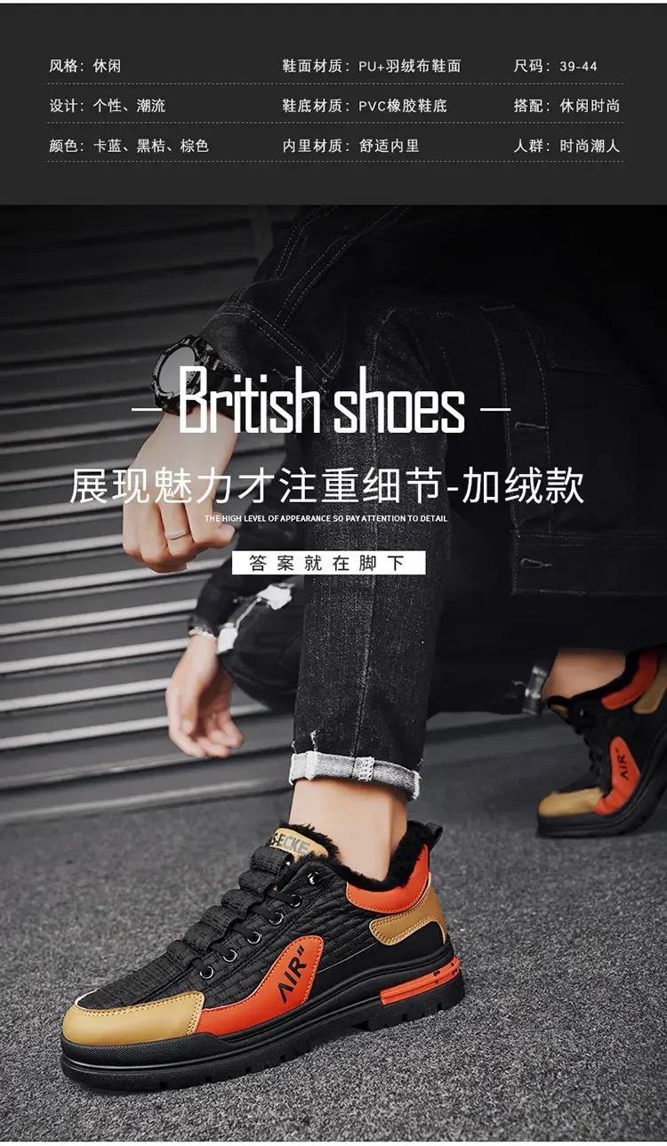 New Winter Furry Warm Men’s Leather Casual Shoes Fashion Designer Patchwork Lace-up Skate Shoes Outdoor Sport Versatile Student