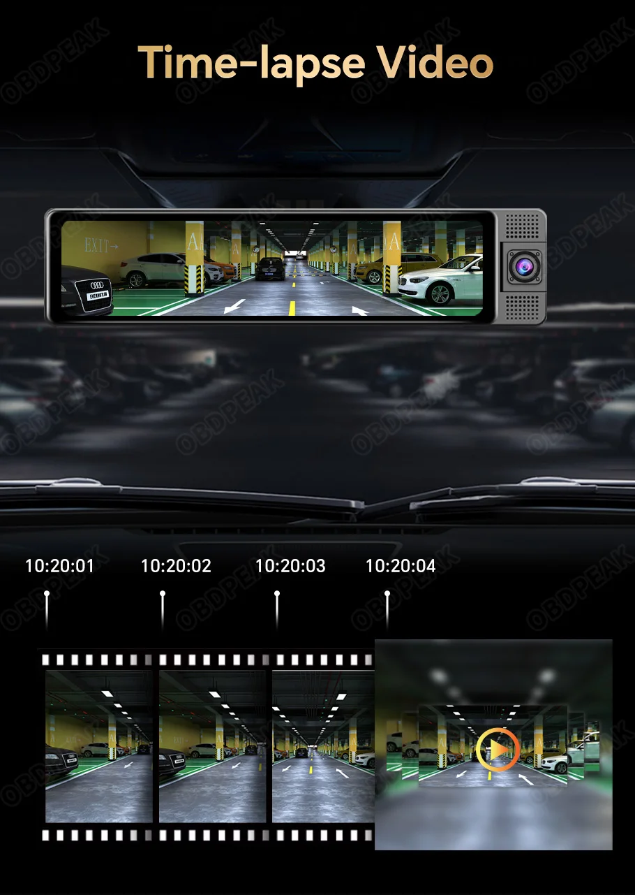 The OBDPEAK H330 can switch screen display modes, with full screen display at will. It can display front+interior/front+rear on 2 screens, and front+interior+rear on 3 screens