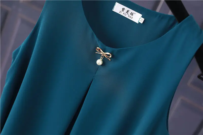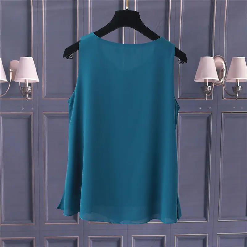 Obesity Women Chiffon Shirt 2022 New Summer Sleeveless O-neck Blouse Casual Solid White/Red Loose Oversized Female Tops