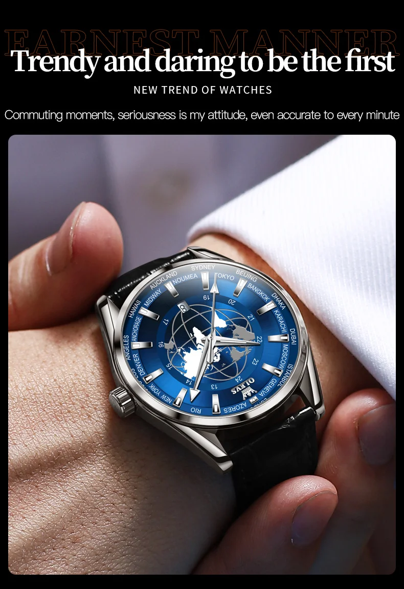 OLEVS 9926 Quartz Waterproof Men Wristwatch, PU Strap Fashion Hot Globe Watches For Men Luminous Calendar