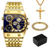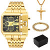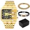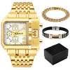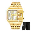 Reloj Oulm Auto Date para hombre, reloj de pulsera cuadrado de cuarzo dorado para hombre, deportivo, zona horaria múltiple, militar, resistente al agua, reloj para hombre