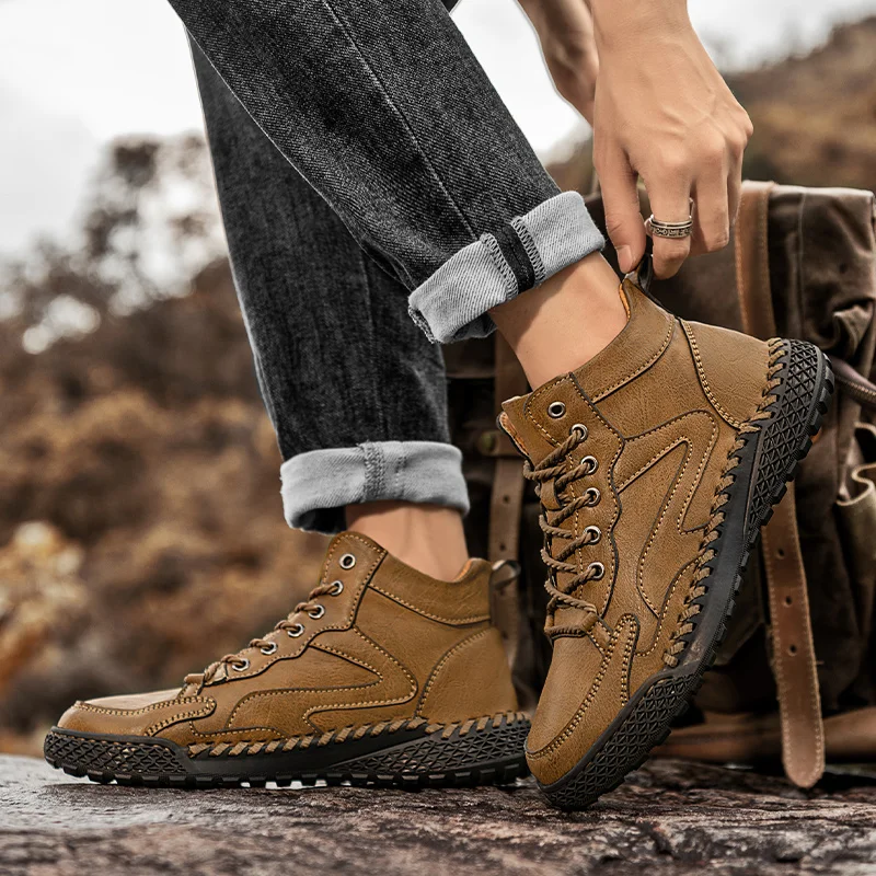 Outdoor Hiking Shoes for Men Autumn Winter Men Ankle Snow Boots Optional Plush Non-slip High Top Casual Shoes Sports Sneakers