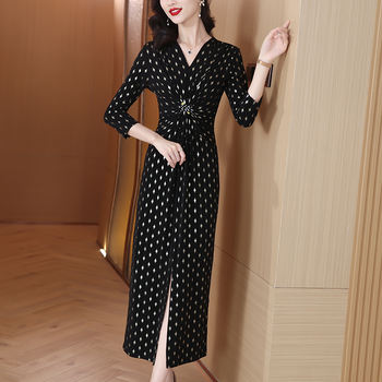 Women Black Velvet Embroidery Chic Midi Dress Autumn Winter Elegant Luxury Party Dress 2024 Korean Vintage Night Dresses