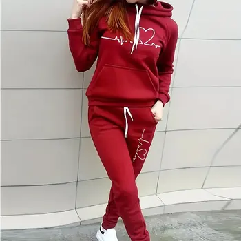 2 Piece Set Women Spring Autumn Hoodies Suit Tracksuit Sweatshirt Print Hoodies Pants Sportwear Women’s Sports Suit Hooded Set