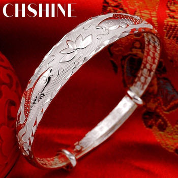 CHSHINE Fine 925 Sterling silver for woman Heart Bangles lady bracelets wedding party jewelry Holiday gifts designer charms