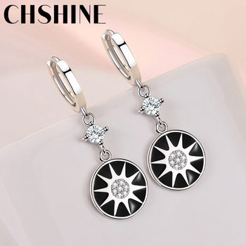 CHSHINE 100% Real 925 Sterling Silver Crystal Circle Earring For Women Making Jewelry Gift Wedding Party Engagement E024