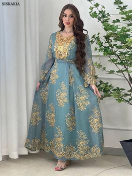 Siskakia Arab Dubai Embroidery Applique Moroccan Kaftan Corban Eid Al Adha 2023 New Muslim Party Dinner Robe Women Abaya Dress
