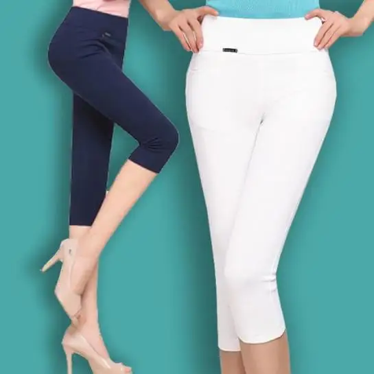 Pants Super Stretch Summer White Plus Size Female Elastic Pants Calf length 6XL Extra Large Size Women Black Capris AE341