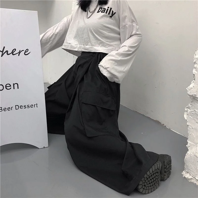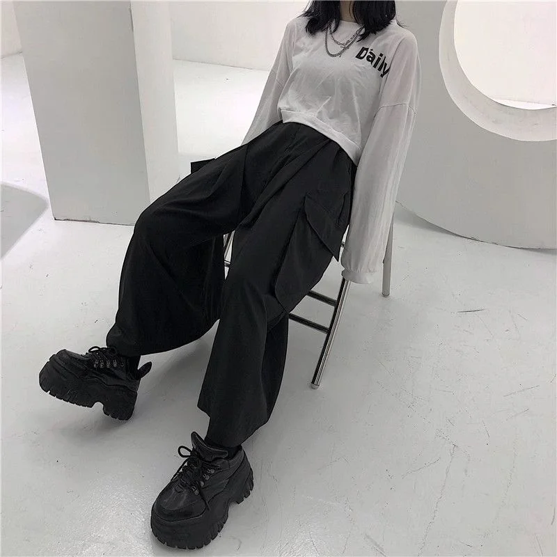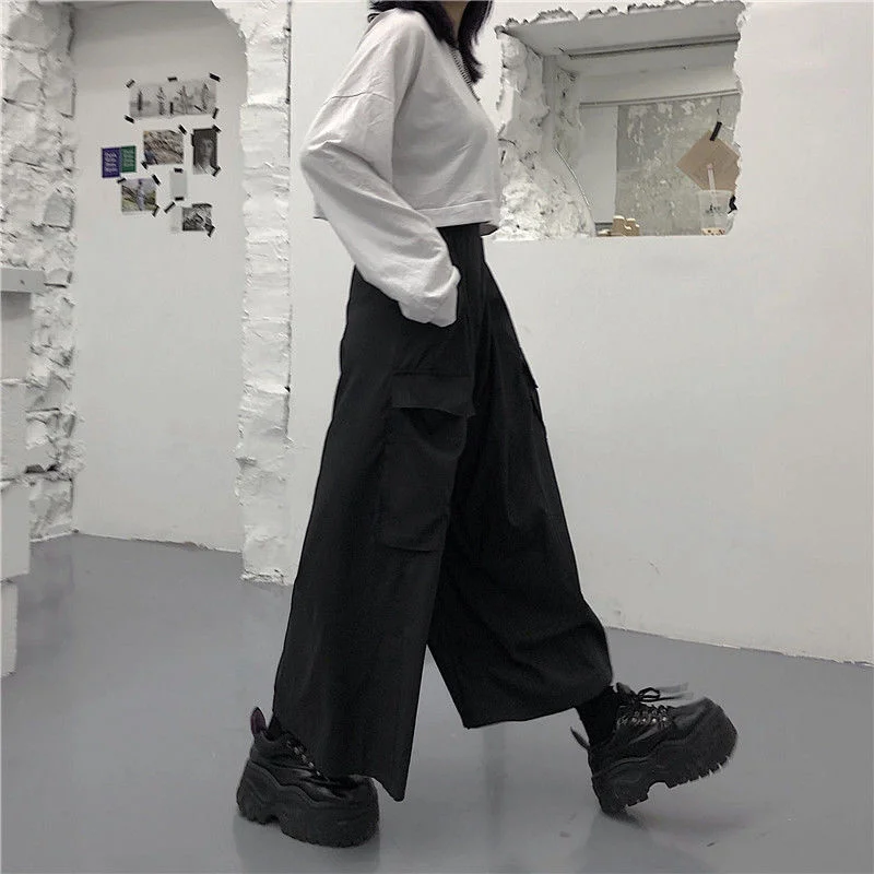 Plus Size Women Wide Leg Pants Y2K Streetwear Loose Cargo Pants 90S Gothic Harajuku Oversize Female Trousers 6XL