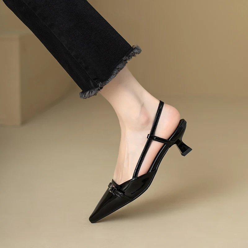 Pointed Toe Sexy Mid Heels Party Shoes Women Sandals Designer Summer Brand Pumps Slingback Casual Shoes Dress Slippers 2024 New