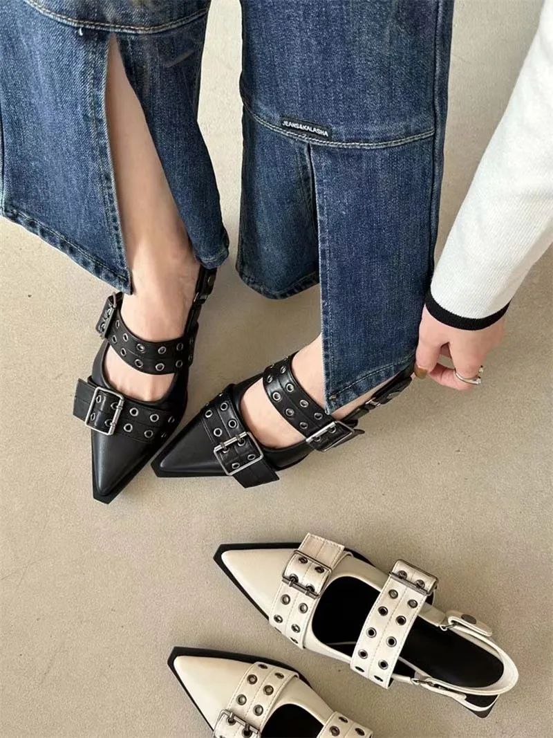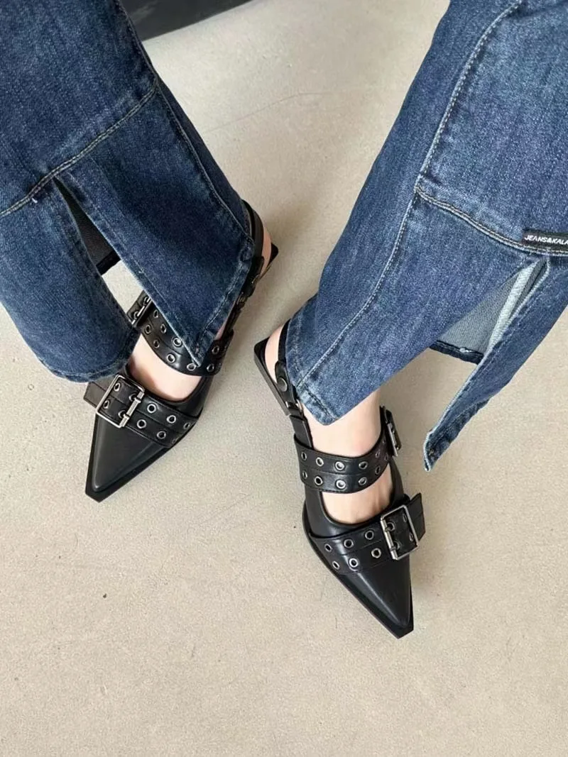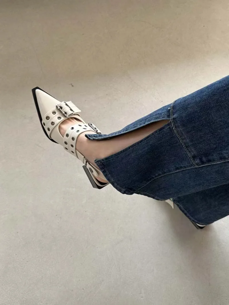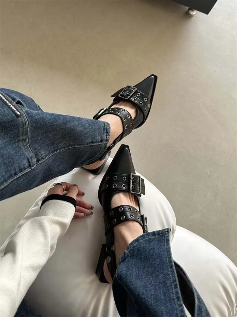 Pointy Mary Jane Shoes for Women 2023 Summer Model with Skirt Small Leather Shoes Retro Chunky Single Shoes for Women