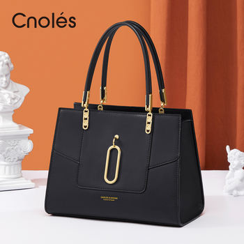 Cnoles Black Women Handbags Fashion Tote Bags Cowhide Leather Large Capacity Luxury Designer Shoulder Bag
