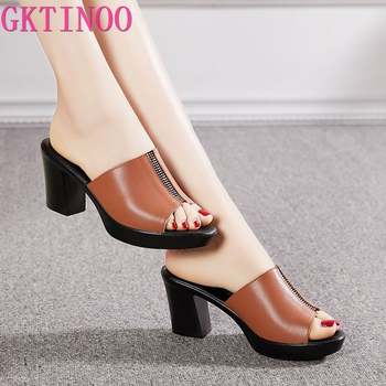 GKTINOO Women Slipper’s 2024 Ladies Summer Slippers Shoes Women High Heels Fashion Rhinestone Genuine Leather Summer Shoes