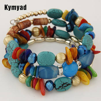 Kymyad Bohemian Beads Crystal Charms Bracelets For Women Ethnic Style Multilayer Imitation Natural Stone Bracelets Bangles Men