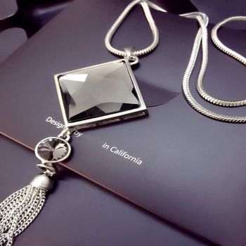 BYSPT Square Crystal Pendant Long Tassel Necklaces Women Fashion Jewelry Wholesale Silver Color Necklace Sweater Chain