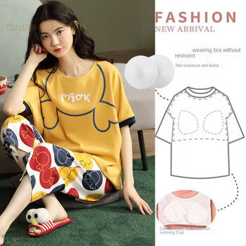 Summer Nightwear PJ Young Womens Pajama Sets Bust-Padded Pyjamas Femme Cartoon Sleepwear Female Loungewear Pijama Mujer Homewear