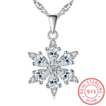 925 Sterling Silver Jewelry AAA Zirconia Snowflake Pendant Necklace For Women Gift 45cm Link Chain choker collares S-N134