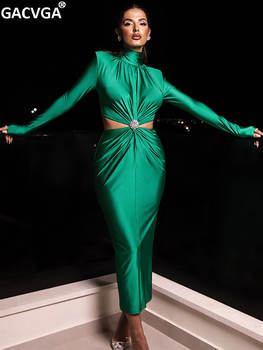 GACVGA Turtleneck Elegant Casual Women Dresses 2024 Spring Autumn Ruched Slim Fashion Sexy Bodycon Club Party Long Dress