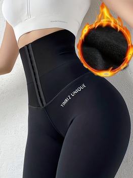 Velvet breasted girdle waist leggings for women wearing autumn and winter high waist non-drop belly and velvet thickened yoga Ba