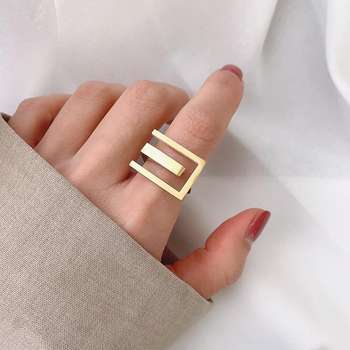 Gold Color Titanium Steel Square Cuff Personal Rings for Women Girls Lover Female Engagement Wedding Ring Ewelry