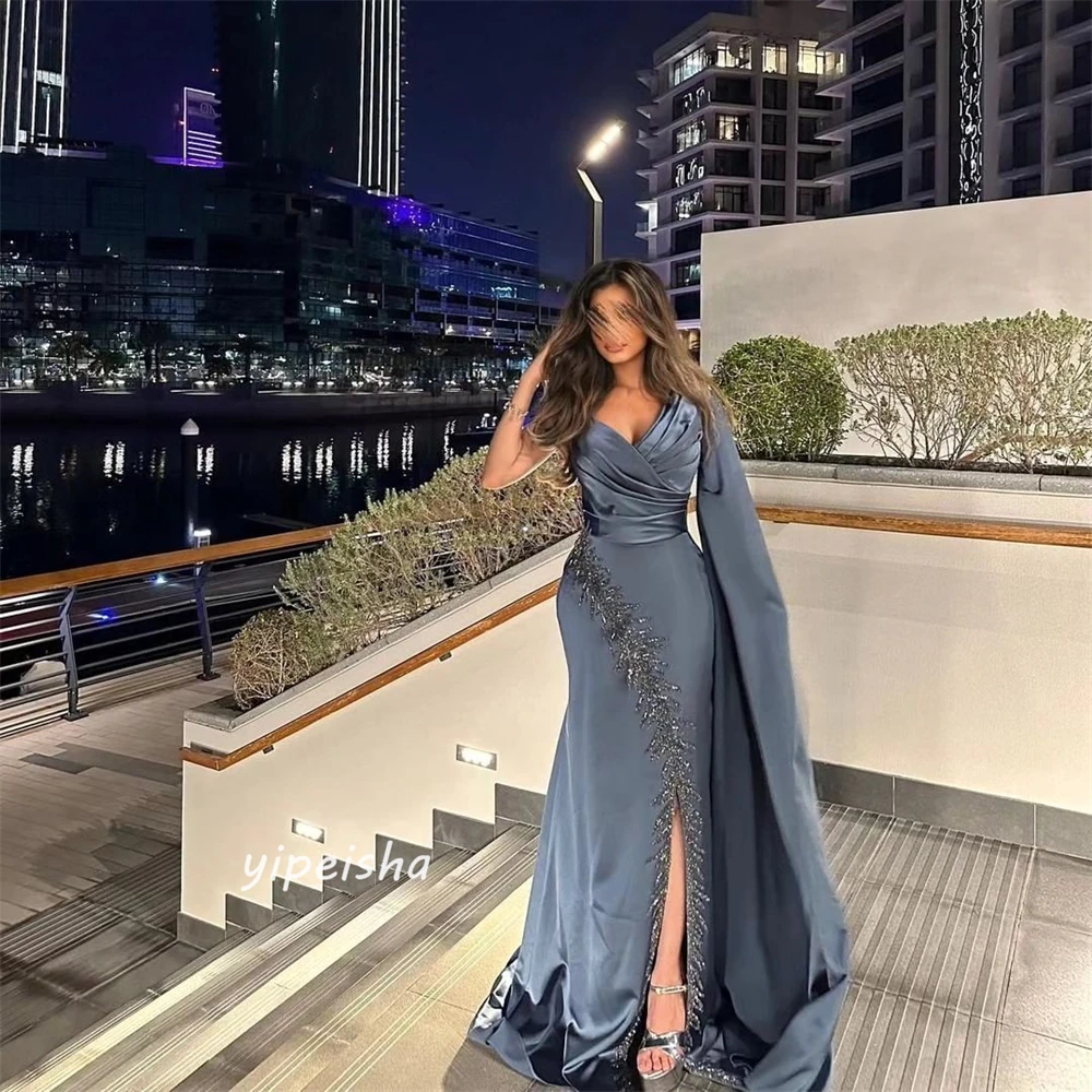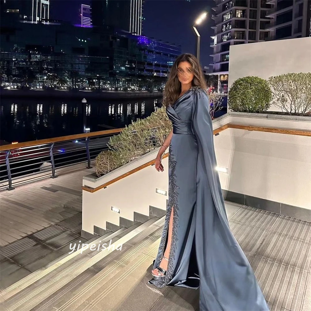 Prom Dress Saudi Arabia Sexy Modern Style Formal Evening V-Neck A-line Beading Floor-Length Satin Bespoke Occasion Dresses