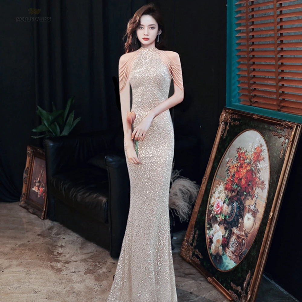Prom Dresses V-Neck Sequined Evening Dresses Long Mermaid Prom Dress