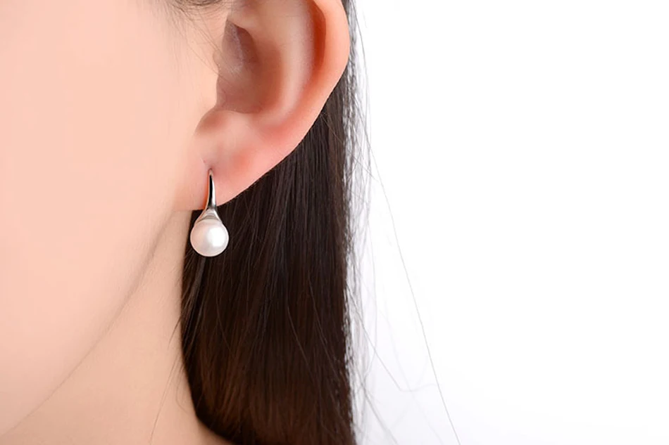 Pure 925 Sterling Silver Earrings Drop Women Round Natural Freshwater Pearl Hook Dangle Earring Ear Drops Brincos De Prata