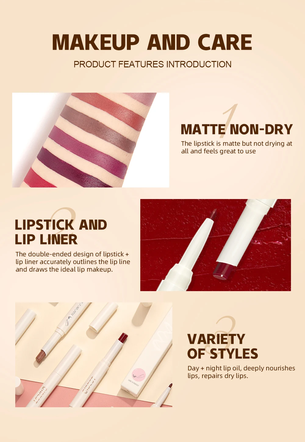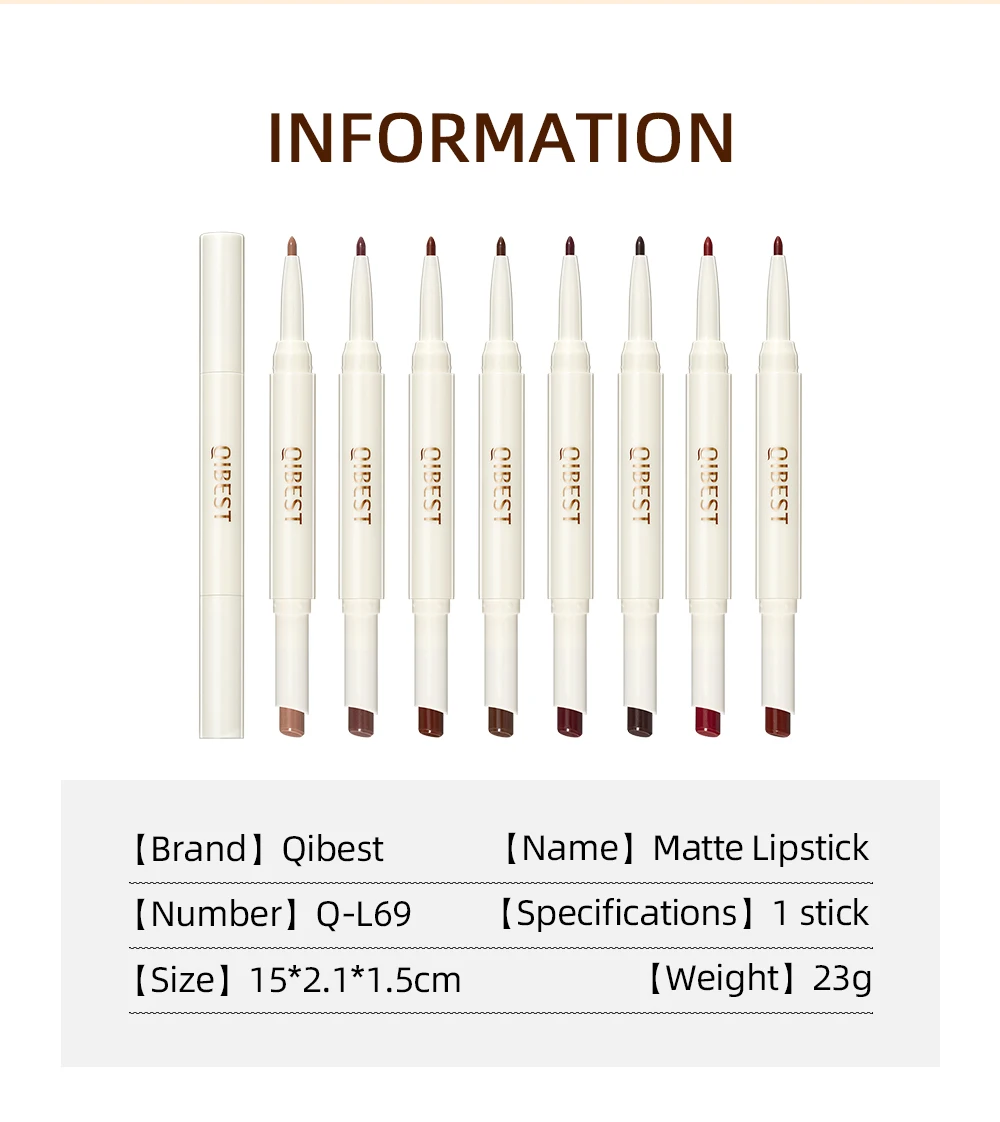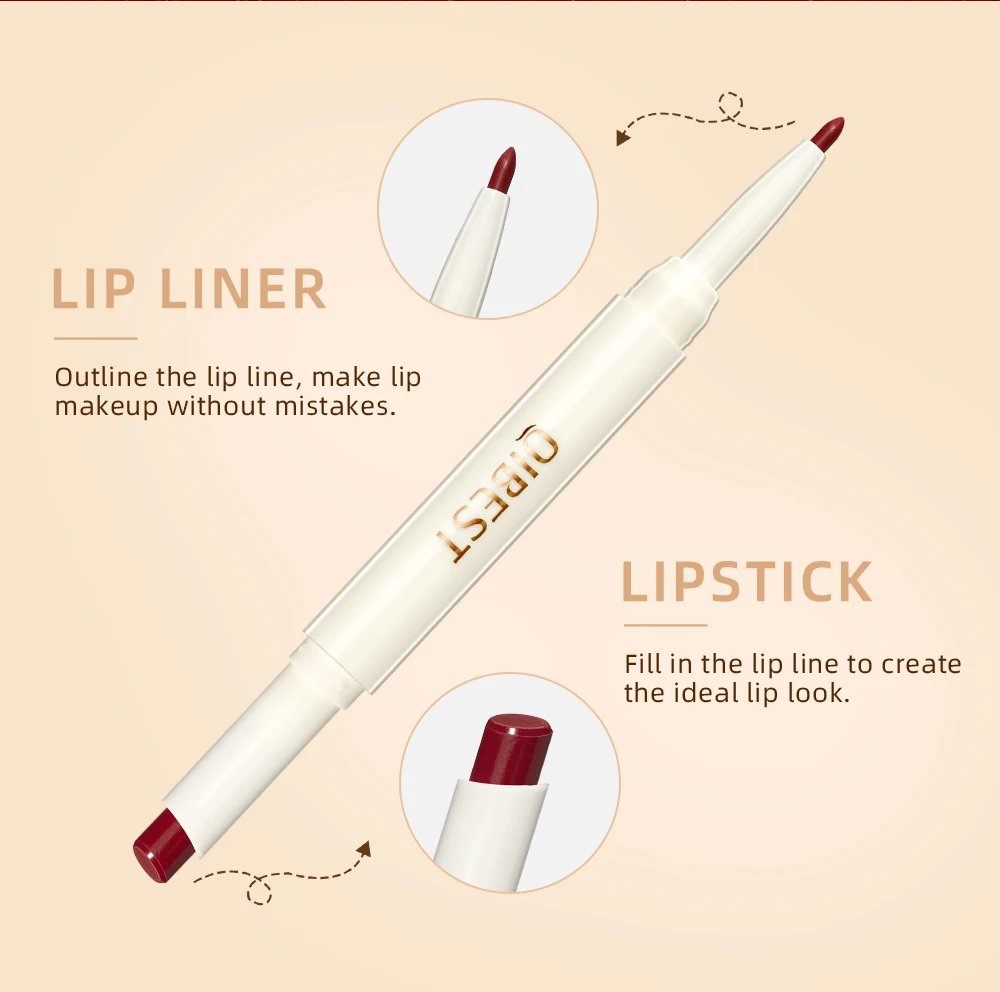 –[Double head design, easy to create a perfect makeup] The lip liner outlines the lip shape, and the lipstick adds color.