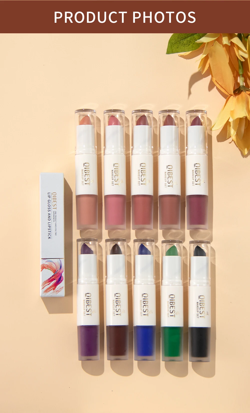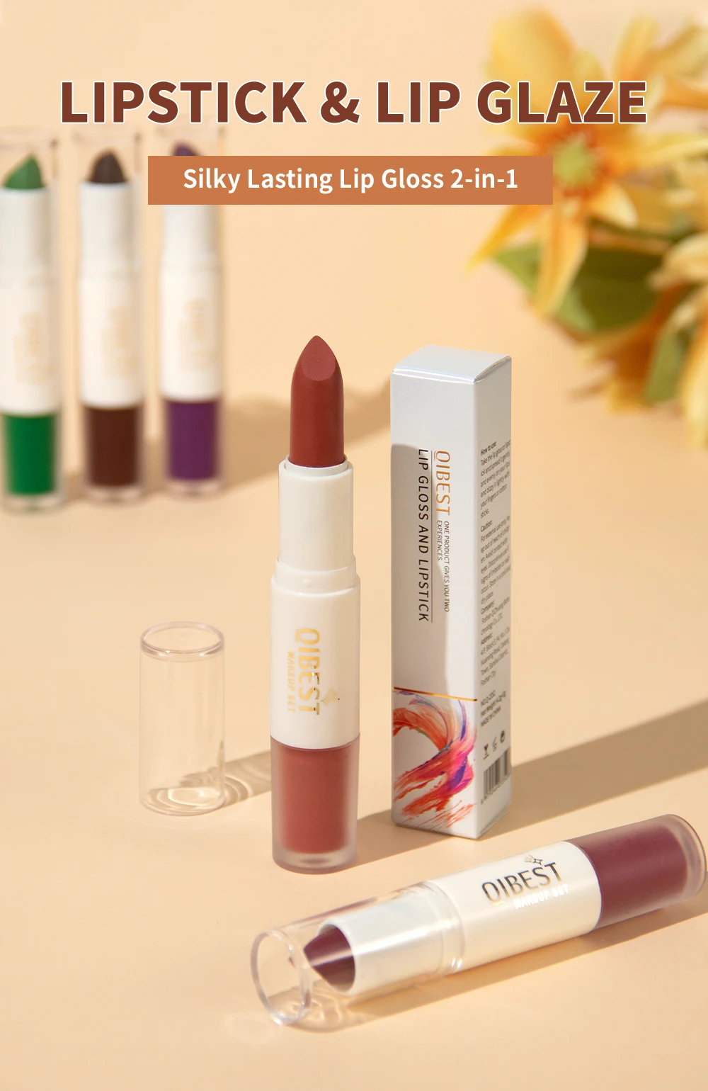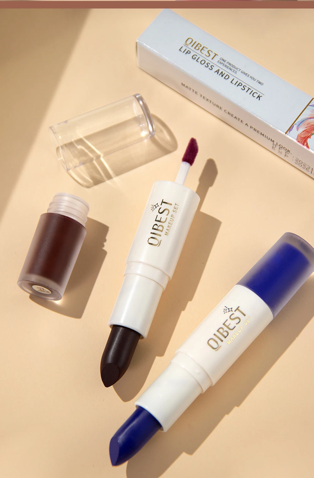 QIBEST 2 In 1 Matte Velvet Liquid Lipstick Lip Gloss Stick Moisturizing Long Lasting Lip Glaze Makeup Tint Plumper Cosmetics