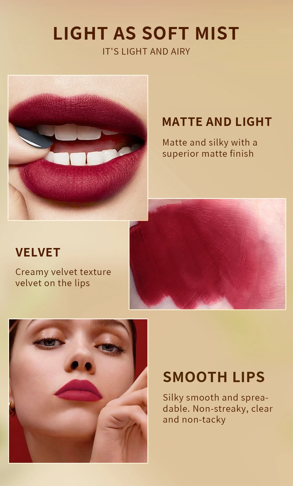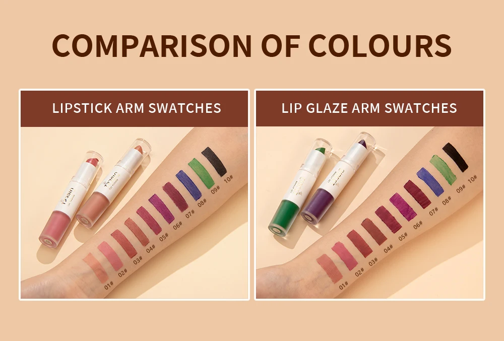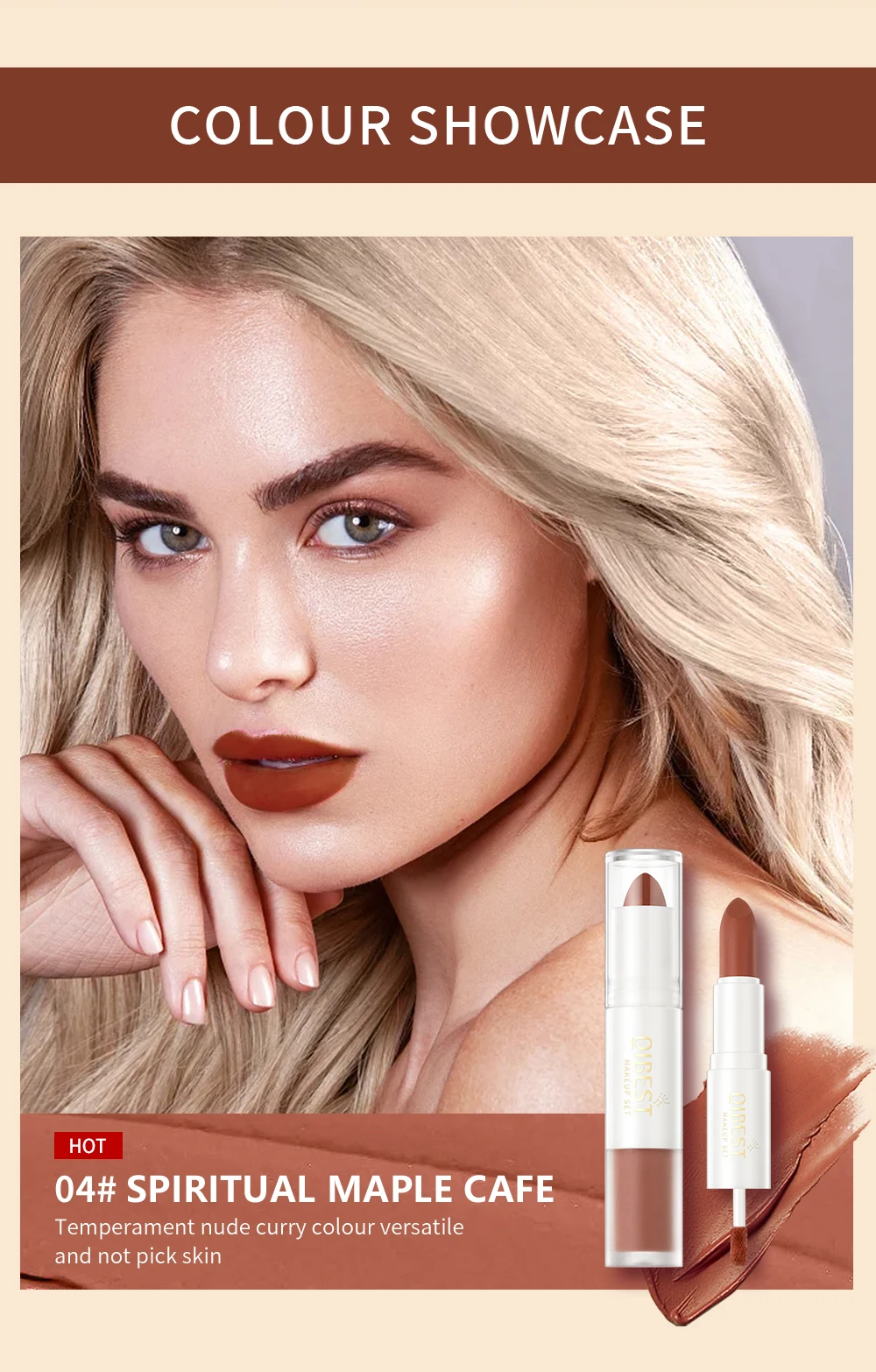 【2 In 1 Matte Lipstick Lip Glaze Stick】Non-stick matte lip gloss stick colour rich and full, makes full colour makeup effects.