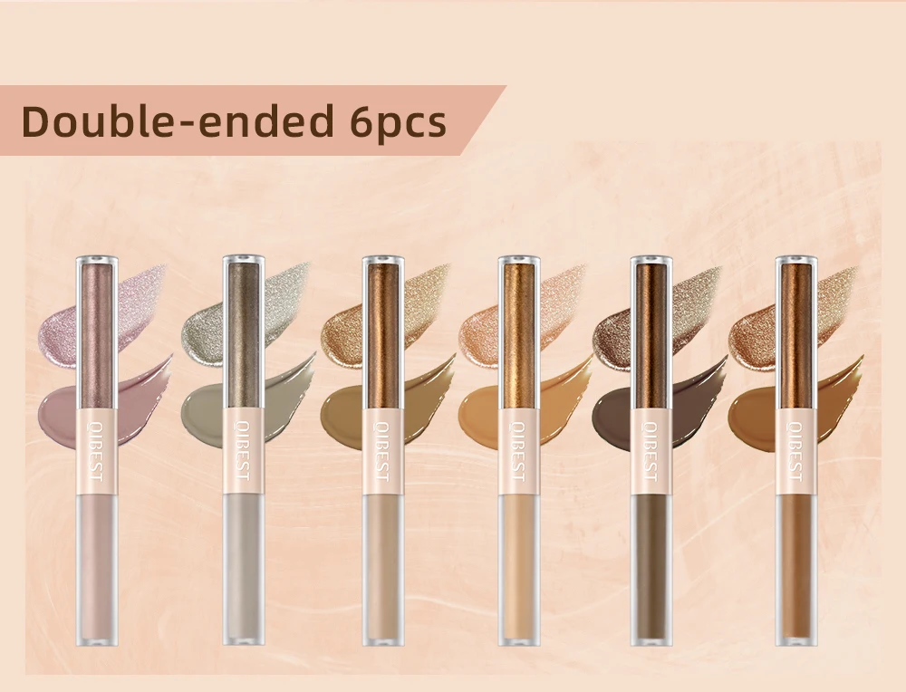 QIBEST Double End Glitter Matte Eye shadow Stick Pencil Eyeshadow Makeup Waterproof Bicolor Shimmer Cosmetics Beauty Makeup Tool