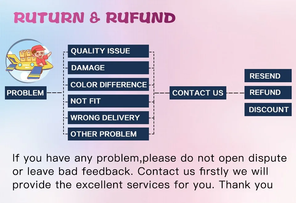 • If you do not want the product you’ve received you may request a refund but you must return the item at your expense and the item must be unused.