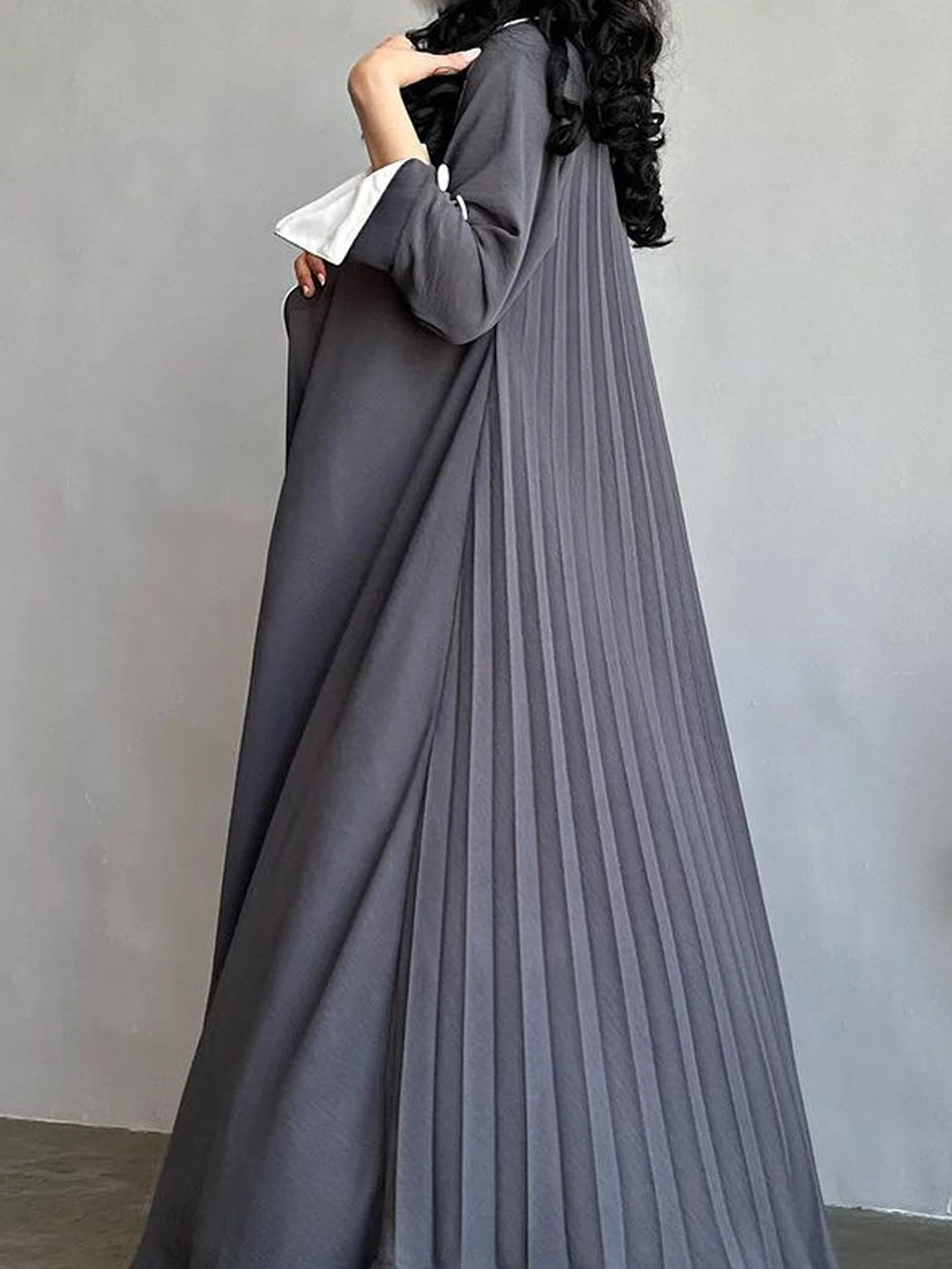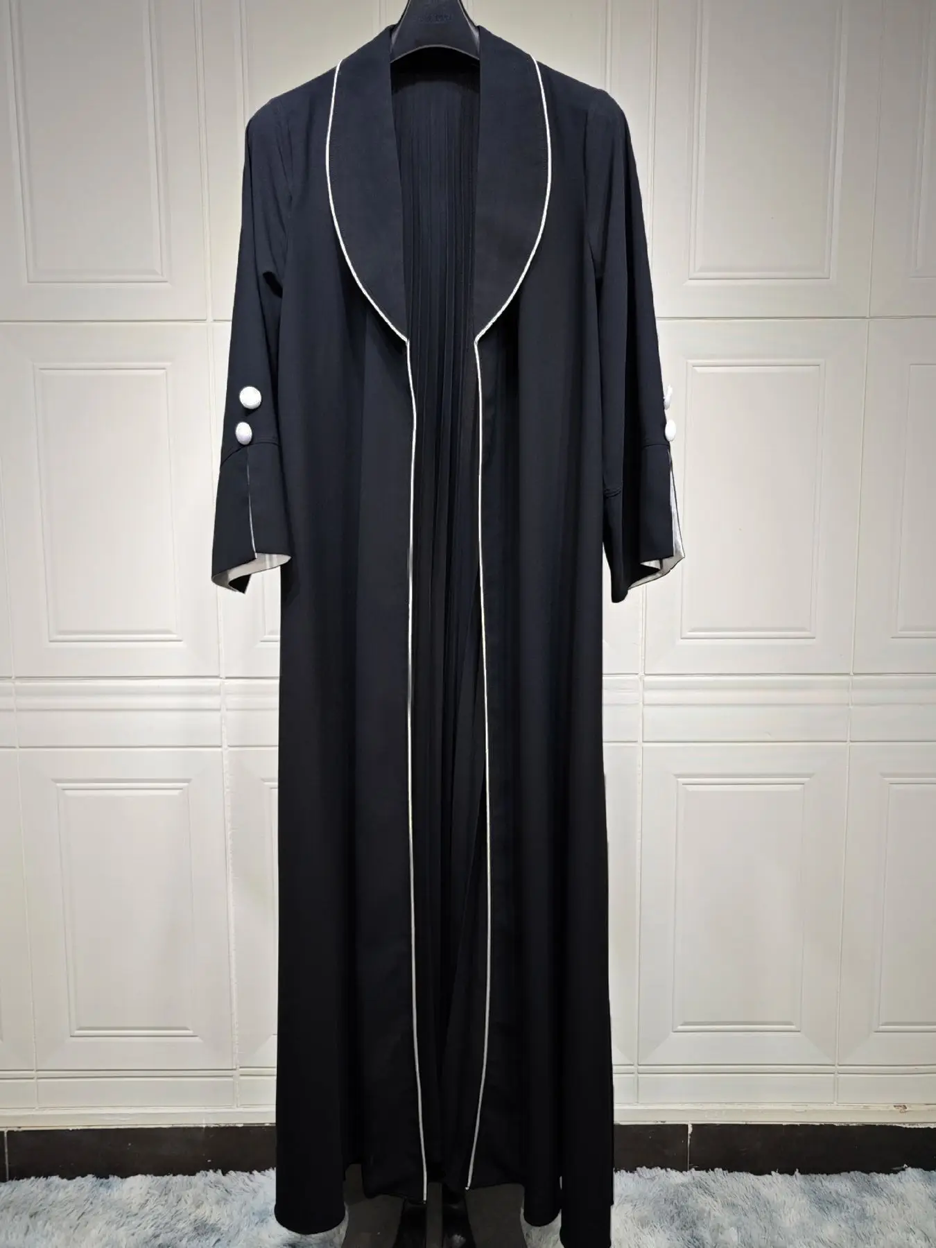 Ramadan Eid Muslim Kimono Abaya for Women Pleated Abayas Saudi Arab Button Split Sleeve Maxi Vestidos Morocco Kaftan Long Robe