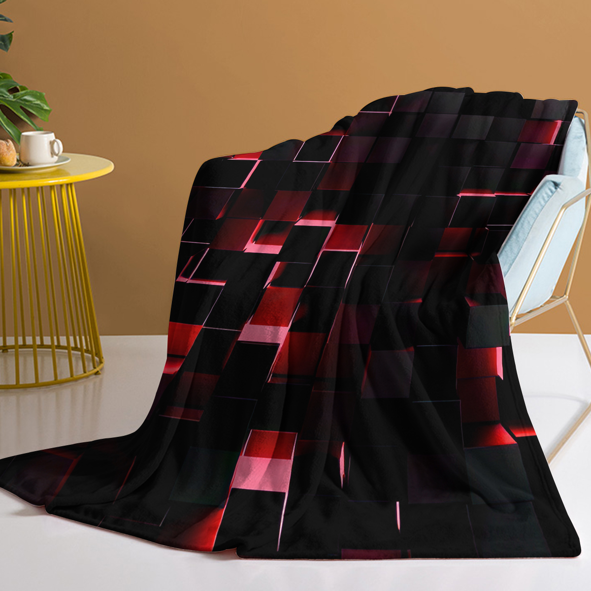 Red and Black Modern Geometric Square Pattern Throw Blanket Soft Cozy Fleece Flannel Throw Blanket for Couch Sofa Bed