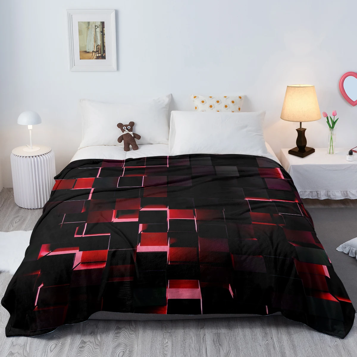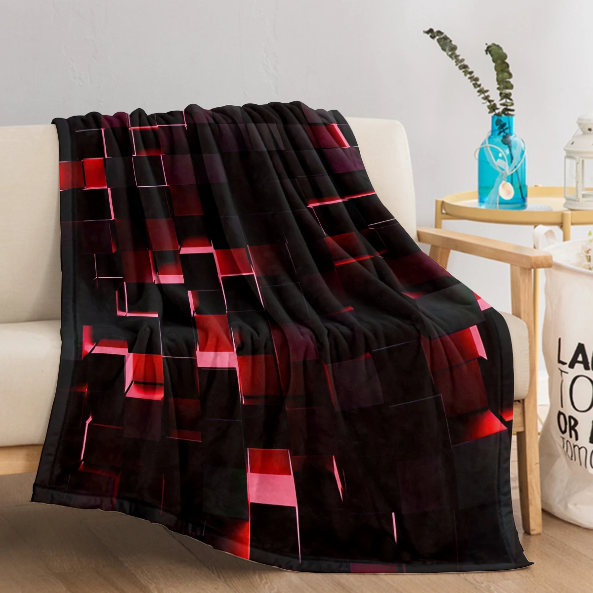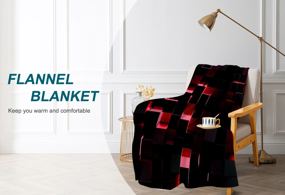Red and Black Modern Geometric Square Pattern Throw Blanket Soft Cozy Fleece Flannel Throw Blanket for Couch Sofa Bed