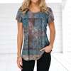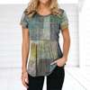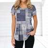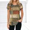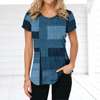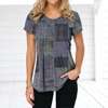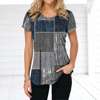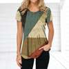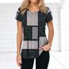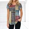 Retro Women’s T-shirt Plaid Print Tees Patchwork Clothes O Neck Short Sleeve Blouse Oversized Ladies Tops Female Harajuku Shirt