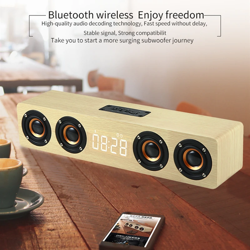 20W Wooden Bluetooth Speaker 4 Speakers Sound Bar TV Echo Wall Home Theater Sound System HIFI Sound Quality Soundbox for PC/TV
