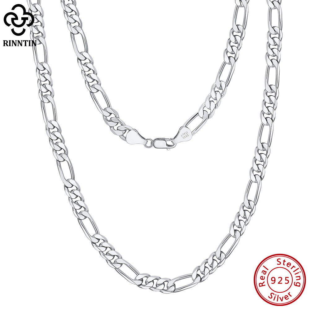 Rinntin 925 Sterling Silver Diamond-Cut Figaro Link Chain Necklace for Men Women Trendy Punk Neck Chain Silver Jewelry SC27