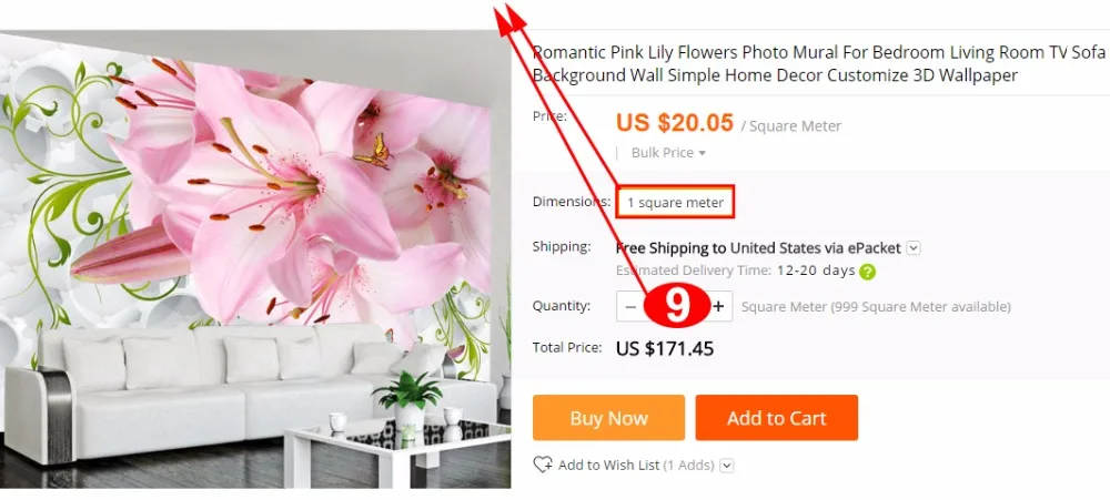 Step 2: Choose the right quantity in the order. Square meter = Order Quantity