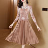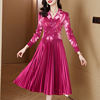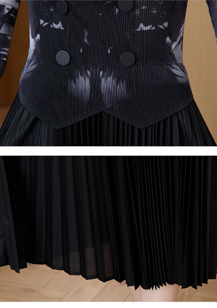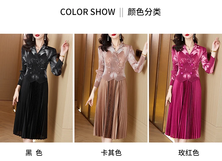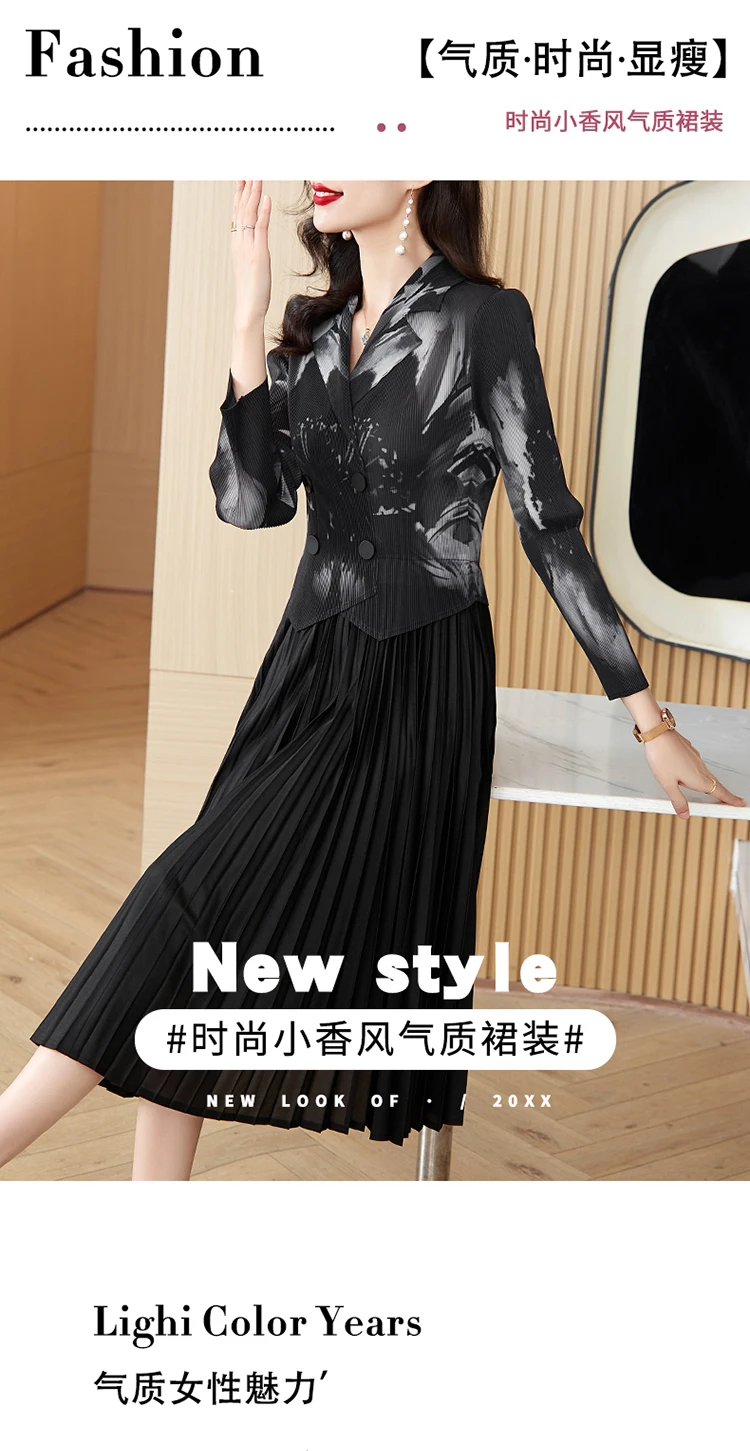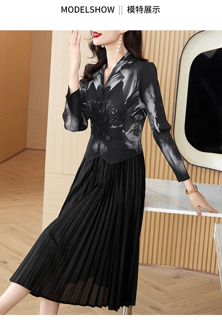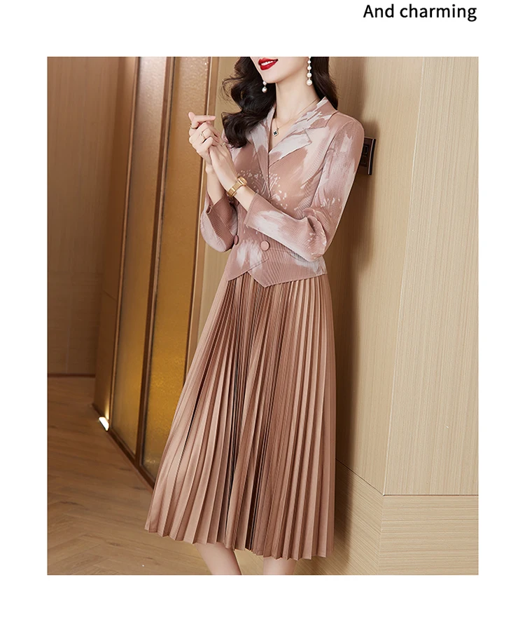 Sanzhai Pleated Dress 2024 Spring/Summer New French Style Rose Red Printed Suit Pleated Dress Spliced Fake Two Piece Dress