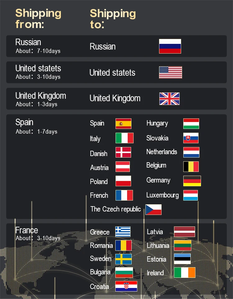 Canada, Europe 10-30 Business days